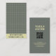 Utformning av affärskortet med ett svart kontrollerbart mönster i en ren, minimal layout, med en QR-kod för direkt tillgång till en webbplats eller portfölj. Lämplig för handgjorda klädmärken, professioneller för kreativ eller butikbutiker.