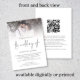 Modern QR-kod för fotot på bröllopet. Lägg till din QR-kod på din bröllopswebbplats på baksidan gör detta till ett bekvämt alternativ för dina gäster att svara och se alla detaljer utan att behöva separata svarskort och informationskort. Din QR-kod genereras automatiskt när du ändrar exempel-URL till din egen. En informell typsnittsstil i svart för huvudet "Bröllopet" som kompletterar resten av texten som du enkelt kan anpassa. Ersätt exempelbilden med ditt eget favoritfoto.