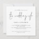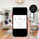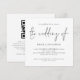 Modernt QR-kodbröllop med fyrkantig form. Lägg till din QR-kod på din bröllopswebbplats på baksidan, vilket gör det till ett bekvämt alternativ för dina gäster att svara och se alla detaljer utan att behöva separata svarskort och informationskort. Du kan skapa QR-koder gratis online. Sök bara efter “QR code creator” och många alternativ dyker upp för att skapa kostnadsfritt. En informell typsnittsstil i svart för huvudingrubriken “The Wedding Of” som kompletterar resten av texten som du enkelt kan anpassa.