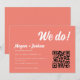 Modern QR-kod Korallrosa 'We do!' Bröllop Save the Date. Lägg till datum, plats och information om er bröllopswebbplats samt brudens och brudgummens namn i elegant skrivstil. Vänligen kontakta formgivaren om ni behöver hjälp med ändringar.