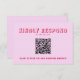 Ett enkelt och elegant kalligrafiskt färgat bröllop OSA-kort. Den har en vintage modern unik rosa för peachy-blek med skript för röd magenta. Med anpassadet QR-kod. Minimalistisk och chic med handskriven text. Allt går att redigera genom att klicka på knappen Anpassa.