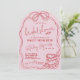 Anpassa denna söta, moderna och krångliga rosa och den röda hand plockade stil-bågformen bröllop inbjudningskort för möhippan, med handskrivna skrivna skrivstipografidetaljer med detaljer om vita coquette-röda band för ram och blommigt-vintage för hjärtkakor! OSA på bröllop webbplats eller avsökningsregister QR-kodinformation finns på baksidan för en enkel design! Ladda enkelt upp QR-koden för bröllop och redigera den här inbjudan med information om bröllop för att göra den till din! Rulla nedan om du vill se den matchande bröllop-lagersamlingen. Anpassad design-förfrågningar och mallfrågor välkomnas alltid - klicka på "meddelande" eller e-post direkt på: contact@figandlilyco.com Design ♥ Fig and Lily Studios - skicka välsignelser och tack!