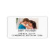 Elegant vit ram-foto sparar datumets returetiketter med grått-skripttypografi. Elke Clarke© . Roligtens nya stadsplanering. Andra färger för texten "spara datumet" finns tillgängliga på begäran och även för färg i bakgrunden.