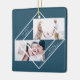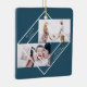 Elegant och modern vit geometrisk ram med två foton och minimal God jul typografi med namn blå helgdag som prydnadsämne.