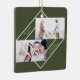 Elegant och modernt, vitt, geometriskt ram med två foton och minimal God jul typografi med namn grönt julprydnad.