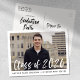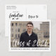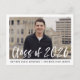Stiliga, moderna inbjudningskort till gradueringsfest med examenkandidatens foto ramad i vitt med "Klass 2026" i en vit, akvarellpenselförstärkt överlagring. Anpassa framsidan genom att lägga till examen kandidatens namn och skola namn i svart text. Inbjudan vänds för att visa din returadress och detaljer om gradueringsfesten i svart text.