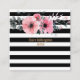 Kortmall för visitkort för personlig som du kan anpassa med en chic, svart och vit, randig design med blommigtens motiv. Ditt namn och din titel finns i en elegant guld-text som ge det till en modern bild och snyggt. Baksidan visar det svarta och vita randen med blommigtens motiv i högernas övre hörn med dina kontaktuppgifter. Blommor-bild skapat av Freepik. Designad av Thisisnotme©