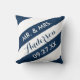 Modern Rand Personlig Dekorativ kudde / marinblått. Anpassa den här moderna dekorativa kudden med ditt namn och bröllop-datum!
