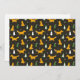 Ett roligt och modernt julkort med ett fantasifullt, sömlöst mönster av stiliserade orange rävar som vandrar genom gröna och vita tallar under en lätt snöfall. Mot en chic, mörkbrun/kolbakgrund är denna design perfekt för dem som älskar samtida eller rustika skogsjulsteman. Skicka en glad och unik hälsning denna höjdsäsong med ett kort som sticker ut!
