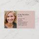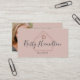 Elegant och professionell i affärskortet gods agent med ett foto på baksidan. Modern logotyp på framsidan med skriptteckensnitt i marinblått och bakgrund i rosa färg.