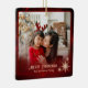 Lägg till 2 av bildernas favoritnamn i den här underbara familjen. Denna vackra, moderna julprydnad med röd bakgrund är en perfekt för att hålla er familj bild och hänga den på Julgran. Du kan lägga till två enskilda foton och den uppdaterade texten fyller på båda sidor om dekorationen. Det skulle ge en underbar gåva till mor- och farföräldrar eller en djurhållare.