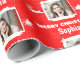 Ett vackert sätt att omforma presenter, den här redigerbara personligen Modern Red and White 1 Photo God jul Wrapping Papper har en modern röd bakgrund. Perfekt för julsäsongen. Klicka på Knappen PERSONALIZE och ställ in namn och ett foto efter eget val. Finns i svartvitt tema och sök efter dem i insamlingsfältet.