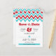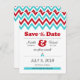 Modern Red Aqua Chevron & Lovebird Spara datum Meddelande Vykort