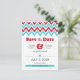Ett modernt och minimalistiskt inbjudningssvit med fet rött och akvblått chevron rand och sött love birds.