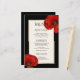 En elegant med röd vallmo i svart bakgrund. Detta kan rymma tre kurser. Om du behöver hjälp med att lägga till din måltider, låt oss veta det. Detta är en del av vår insamling av rödvallmo bröllop, ta ett ögonblick och bläddra mer i vår samling.