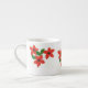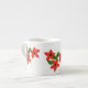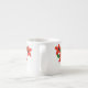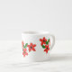 En snyggt vit Espresso mugg med kluster av ljusröda blommor från ett handmålat pappert kollage av Judy Adamson. Andra produkter, gratulationskort och presenter, som t.ex. annat mugg, en saft och en teburk med denna design, finns i min butik.