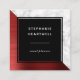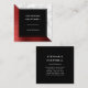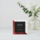 Modern, trendy design features simple white lettering in a black square, against a dramatic background of white marble and ruby red faux brushed metal foil. Add your contact information on the reverse in white sans serif font on a solid black background.