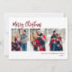 Modern Red Buffalo Play Calligraphy Script Elegant 3 Photo Collage julkort. Den här snygga, enkla, minimalistiska multifoto-christmas-kort har söt tre (3) rasterfotokollage, en "God jul" hälsning-text som är skriven i en handskriven penselskripttyppografi. På baksidan slog svarta och röda bufflar mönster. Den här söt Anpassningsbarna Fotojulkort är ett underbart sätt att påminna nära och kära om att du tänker på dem den här Julhelgen.
