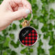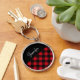 Modern Red Buffalo Play Check Mönster Namn Rund Silverfärgad Nyckelring