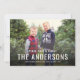 Snyggtens helgdag-fotokort har en modern textövertäckningsdesign som kan vara helt personlig med ditt favoritfoto, hälsning, efternamn, familjemedlemmar och år. Den har en röd och svart buffel som spelar mönster på baksidan av hälsningskortet. Foto kredit: Två fiskfoto www.twofishphoto.com