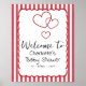 Modern Red Chalk Stripes Triple Hearts Baby Shower Poster