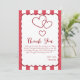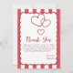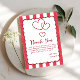 This baby shower thank you card features a red chalk stripe background and triple red hearts. You can personalize the text and change the color by clicking the "Personalize" button. Have a lovely day, my friend!