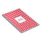 Den bärbara datorn personlig spiral har en röd chevron mönster med eget namn i svartvitt och monogram i pastellröd skugga i vit kvadratisk ram.