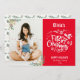 Modern Red Elegant Script Baby Första julkort för Helgdag. Skicka helgdag varmt önskemål och hälsning till dina nära och kära med den här eleganten, chicen och det moderna Helgdag fotokortet med texten "Baby (Baby) Första jul" i namn, handskriven kalligrafi med vacker vattenfärg och snyggt-löv guld. Önska er alla ett Glad helg och ett nytt Fantastisk!