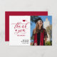 Tack för ditt kort, Modern Red Elegant Script Photo Minimalist Studenten. Ge Wow "Tack" till din familj och dina vänner med detta vackra tackkort. Alla texterna är i förväg ordnade så att du enkelt och snabbt kan anpassa dig till din egen ord.
