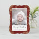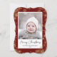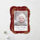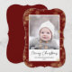 Skicka semesterhälsningar med anpassade och personlig till vänner, kolleger och familj i enkla, minimalistiska, elegant, roligt, festliga och moderna fotokort! Ett vackert ram av varierande guld vinter-snöflingor på maronröd bakgrund omger ditt foto pappert på hakparentesform. Hälsning " God jul " skrivs i elegantens kalligrafi, och i det följande visas anpassningsbarnas meddelande hälsning från din familj namn i modern typografi. Omvänd för att avslöja en vacker snöflingor vid guld vintern på maronröd mönster.