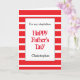 Det här är ett strippat rött Fars dag-kort för styvfar, som kan vara personlig på framsidan med namn. Insidan av det här moderna Fars dag-kortet i Lycklig läser ett sött meddelande som du enkelt kan anpassa om du vill. Baksidan har den strimlade designen med ett ställe för att du ska kunna anpassa dig efter året. Det skulle göra honom till en underbarare nyckelperson.