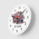 Modern Red Fire Lastbil Personlig Namn Rund Klocka