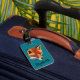 Modern Red Fox & Hand Leting Script Bagagebricka