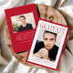 Honor your graduate’s achievement with this Modern Red Frame Photo Graduation Announcement, featuring a bold red border that brings energy and confident contrast to the clean, structured layout. “Graduate” is displayed in striking serif lettering at the top, drawing attention above the graduate’s vertical photo showcased at the center of the design. Their name, school, and graduation year are presented below in a crisp, balanced arrangement that keeps the focus on both the student and their accomplishment. The back highlights a horizontal photo alongside space for personalized text, ideal for graduation party information, future plans, or a thoughtful thank you message. Designed for high school and college graduates alike, this modern red photo graduation card offers a polished and spirited way to commemorate this important milestone.