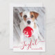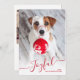 Elegant Modern White and Red Script 2 Photo Glatt Script julkort Helgdag Card. Den här snygga, enkla, minimalistiska, nyktra mallen för Julhälsningar kort med två foto innehåller texten "Glatt" hälsning som är skriven i ett vackert handskrivet rotografiskt skript för att snabbt byta ut mot svan i rött mot vit färg-bakgrund. På motsatt sida med din hälsning-meddelandemall med en liten hjärtdocka på vitt och en fotomall. Söt hälsningskort för din familj och dina vänner under julens Julhelg.