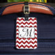 Modern Red Glitter Chevron Monogram Luggage Tag Bagagebricka