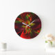 Modern Red Grönt Blommigt Abstrakt Art Mönster #05 Stor Klocka
