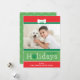Skicka ett leende den här julhelgen med en roligt med ett fotohälsningskort med hund, komplett med hund ben och dekordekordeskonstruktionstecken. Modern design med en polka-punktsmönstrad bakgrund och festive red, grönt och white färg.