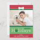 Skicka ett leende den här julhelgen med en roligt med ett fotohälsningskort med hund, komplett med hund ben och dekordekordeskonstruktionstecken. Modern design med en polka-punktsmönstrad bakgrund och festive red, grönt och white färg.