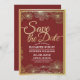 Spara datumsymbolerna för inbjudan till bröllopskort - Elegant Guld som skriver skript och Vintage Guld Blommigt Ram på Röda bakgrunden. En Perfekt för din stora dag. Alla textstorlekar i stil, färg, kan ändras för att passa dina behov!
