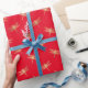 Den här pappra inslagningen har en röd bakgrund i den moderna faux-guld-folie drakefliljan mönster.