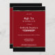 Ett modernt enkelt rött, svart och vitt högte inbjudningskort för möhippan med guld och silver med rand.