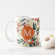 Personlig Modern Red jul Holly Berries Monogram-kaffe mugg. Helgdag kaffe mugg med en festlig kullbädd mönster på neutraltens bakgrund. Utformningen har grönt löv och röda bär, som skapar en girig helgdag vibe.