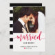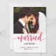 Snyggten "Gift med helgdag" för nylweds har ett porträtt från bröllopsdagen, rött och svart anpassningsbar som kan vara personlig med namn och bröllop datum. Ett litet rött hjärta accentuerar framsidan och ett fet svart och vitt mönster i vågrät rand går bakåt.