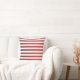 Den moderna kudden har en röd, vit och vit rand på framsidan och en röd mörk på baksidan.