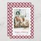 Ett rött bildkort för anpassningsbar med rött helgdag och ett rött och vitt mönster och ett modernt typsnitt för skript. Anpassa enkelt det här gingham-helgdag med ditt foto och familjen namn.
