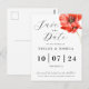 Modern Red Poppy Wedding Save the Date Postcard Vykort