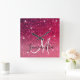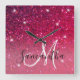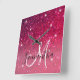Modern Red & Rosa Glitter Sparkles Namn Fyrkantig Klocka
