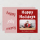 Modern Red Rosa Photo Snowflake jul Lycklig Helgdag Card. Lycklig, gärna, gult önskemål på röd och rosa med vit snöflingor. Lägg till ditt namn och din bild. Du kan ändra valfri text.