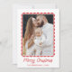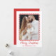 tidslöst helgdag önskemål med detta moderna Röda och vita Helgdag Ram-fotokort. Ditt familjefoto markeras i ett rött vattenfärgsskalat ram mot en vit bakgrund. "God jul" är skrivet i ett handskrivet skript med utrymme nedan för ditt namn och år. Baksidan har ett samordnat foto av vågrät med plats för ditt personlig-meddelande. skapar det här ett klassiskt och modernt julkort.